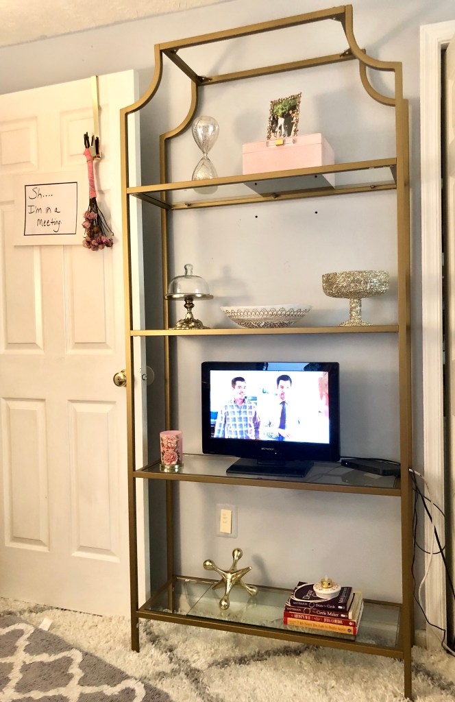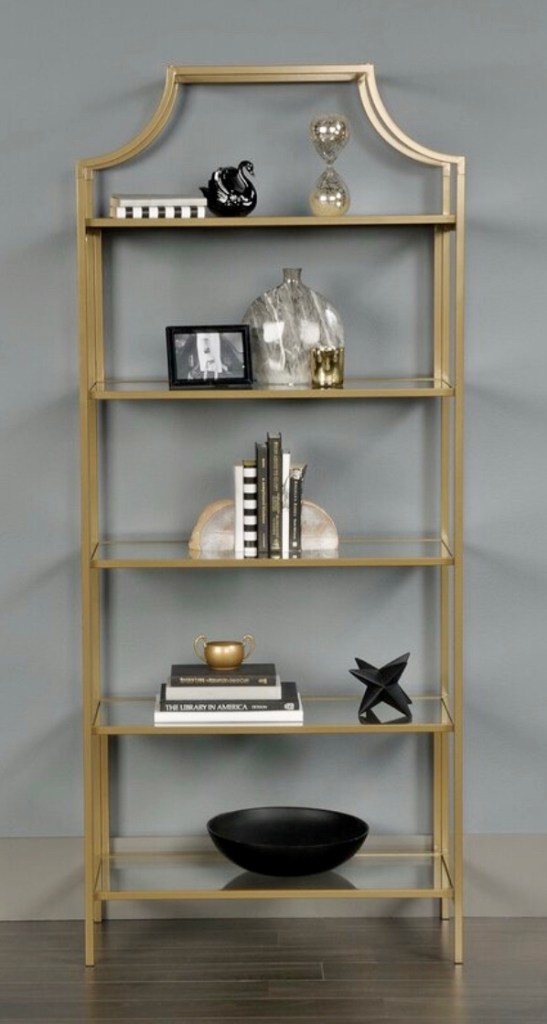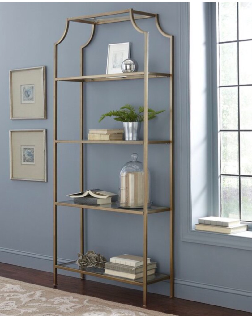 The first item for my office/guest room remodel has been purchased; a gold “Legette Etagere bookcase” from Birch Lane-Wayfair (my favorite online store). “Wayfair, you got what I need!”. 😀 The Legette bookcase cost $290.00 and the gold color is currently out of stock. However, Birch Lane, All Modern offers a similar bookcase called the “Damon Etagere” that is now on sale for only $190.00 to 210.00. As you can see from the pictures, the Damon has more shelves than the Legette. I would post a pic of my styled bookcase, but my bookcase is still in the box. If you’re really interested you’ll just have to check back to my website. 🙂