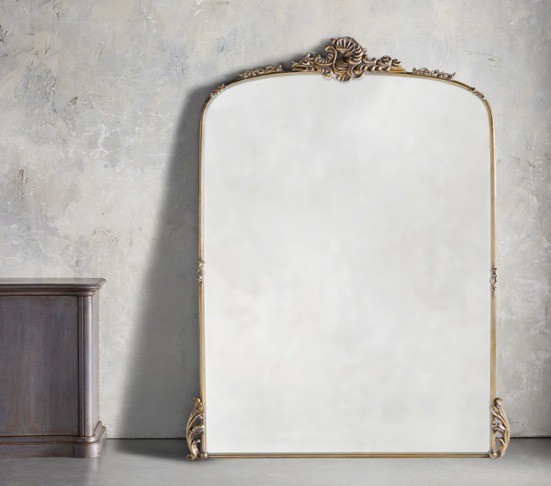 If you’re interested, the Gleaming Primose mirror comes in various widths and heights (H): 3’H, 5’H and 7’H. I have my eyes set on the 7′ H. The price of the Gleaming Primose Mirror (7’H) is $1,548.00. Since this price made me flinch, a little, I found similar floor mirrors on Perigold, Wayfair, and Arhaus, all at a lesser price. Also, I located the “Wooden Manor Mirror” on Anthropologie for $248 – $548, depends on the size.