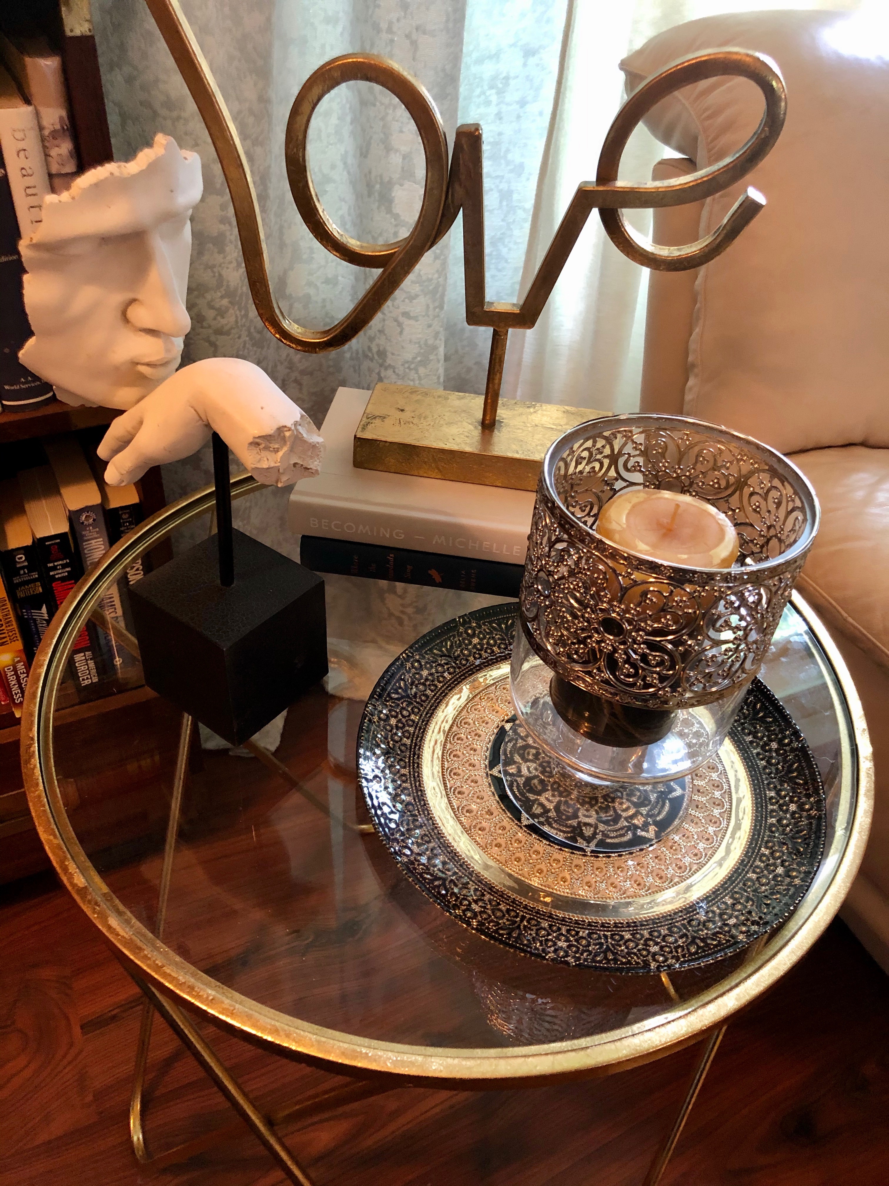 I exclaimed, “Lauryn!” and the house filled with laughter; I couldn’t help to also laugh. Her explanation for the change was it looks better with the book covers on the books and stacked on the coffee table. Since I wanted a book on the console table, she placed “The 15 Years Celebrating Audrey Hepburn” book only, on the console table, under the ginger jar ensuring she does not cover up her face. OH VEY! 🤦🏾♀️