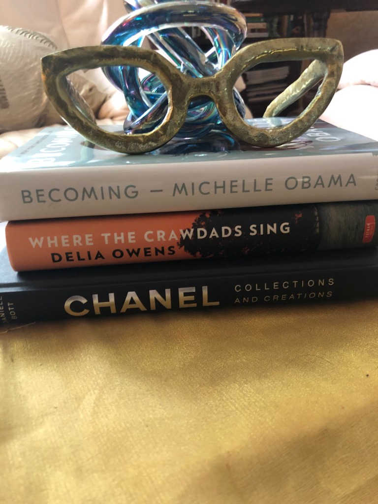 Since this is her home too, we compromised; the Chanel book is back on the console (no cover) with the Audrey book. The other books are stacked on the coffee table.