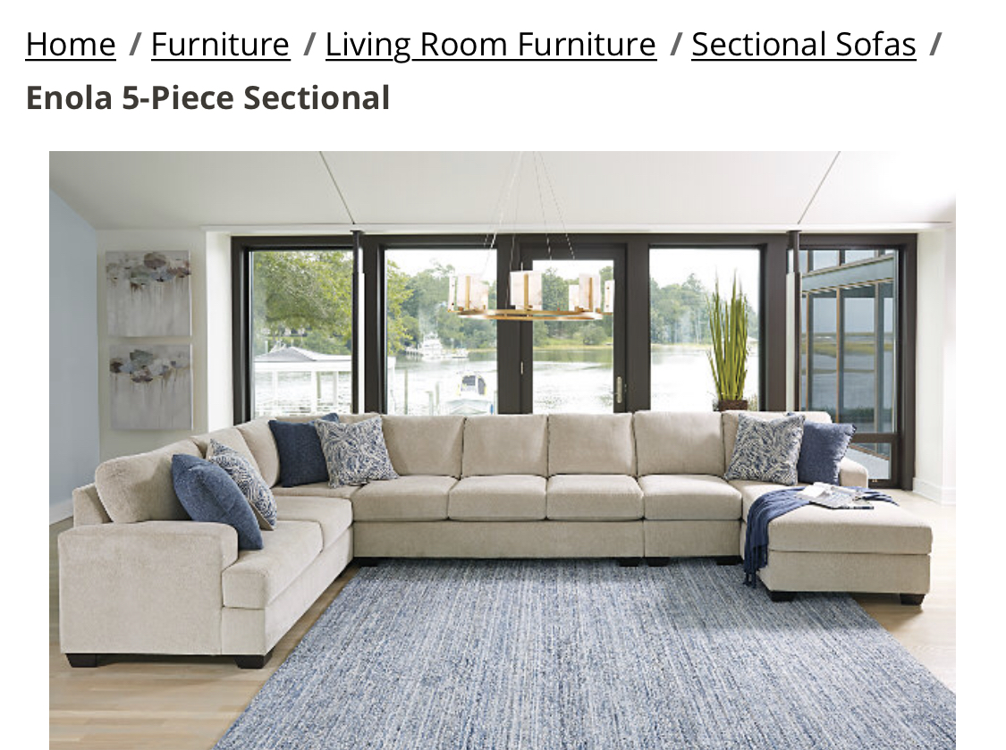I never bought anything from Ashley Furniture; the sectionals that caught my eye online was the Rawcliff and Enola.