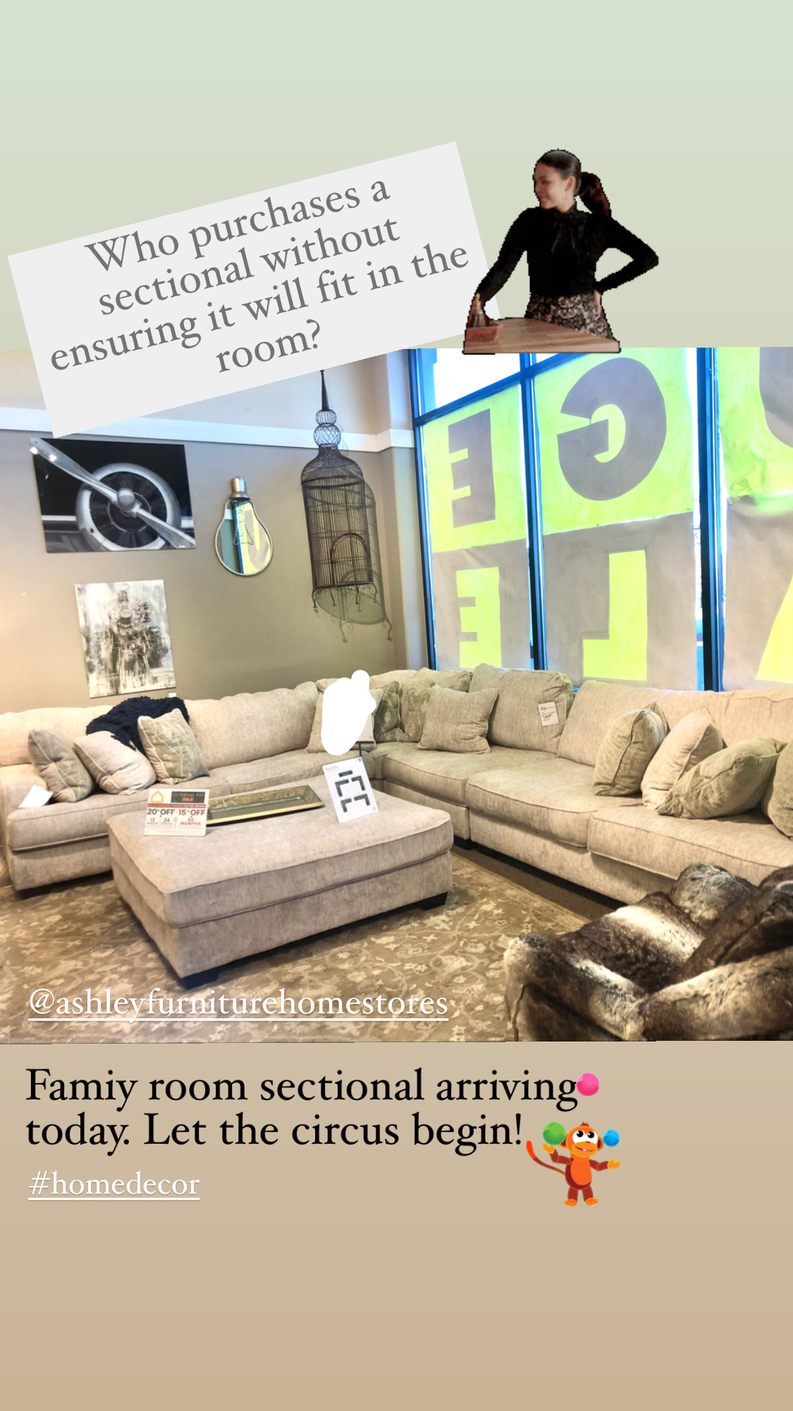 So, like I with every redecorating project, I spend days, weeks and lots of hours spent on Pinterest, Wayfair and all Wayfair sister sites (Joss & Main, All Modern and Perigold). While on Pinterest, Ashley furniture kept popping up and their prices were approximately $500 less than the online stores. Ashley Furniture it is!