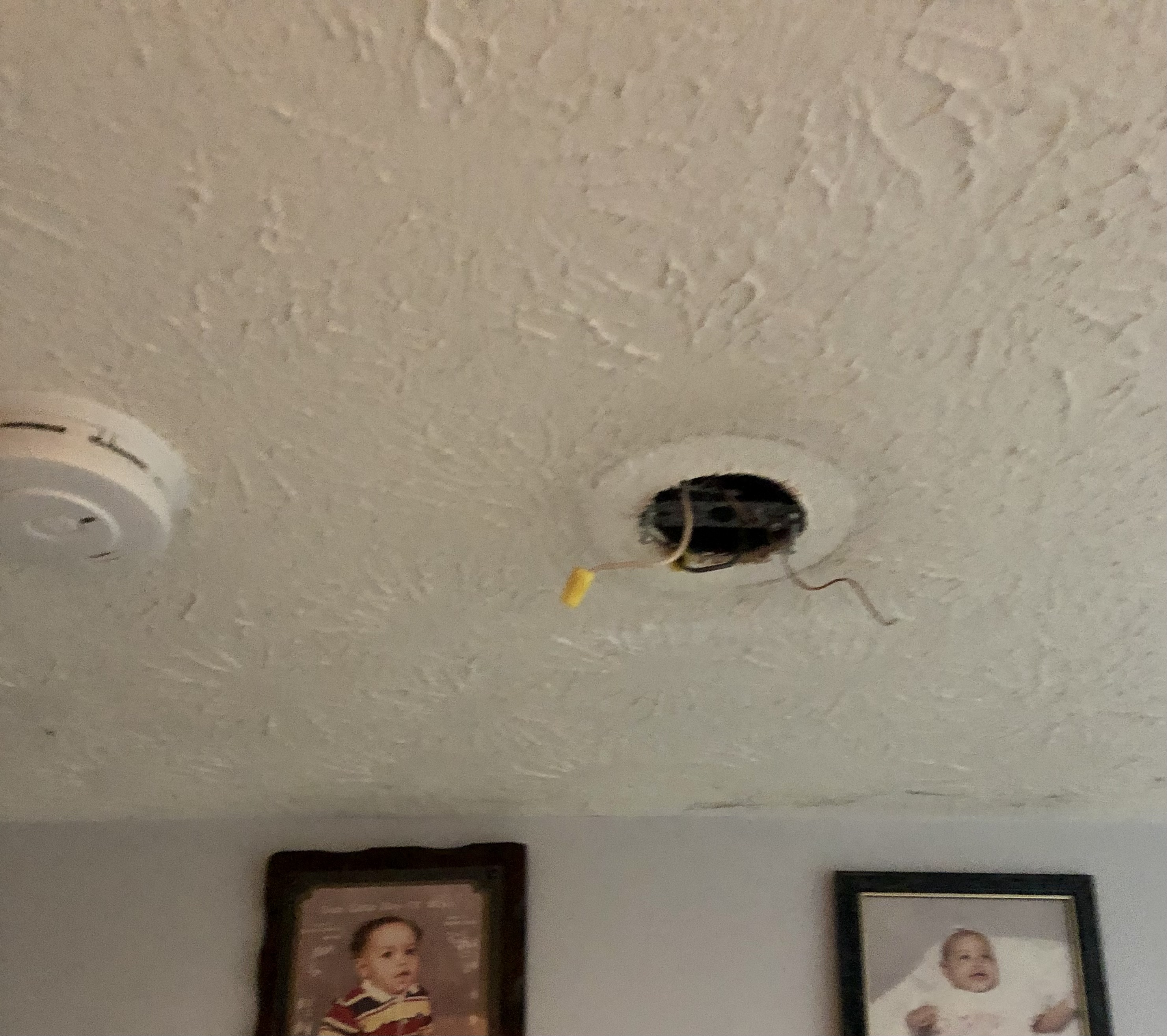 The one time I act on impulse and not measure and re-measure my living space for at least a couple days, I end up with busted walls and broken ceiling light.