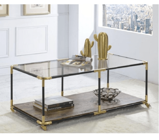 So, the search continues and hours are spent on the internet searching for a simple minimalist silver coffee table, preferably silver leaf, no chrome. The search was coming up empty, nothing was making my heart skip a beat and I did not want to settle. Ding Ding! I need to search “silver and wood coffee table” or “gold and wood coffee table”. Finding a table that meets this description would bring me back to my original design plan, which is enhance the wood and brass elements on the bookcases and the metal wall art. I ended up on Walmart.com and found the unique Heleris coffee table that made my heart skip and do cartwheels. Walmart had one table left and I immediately purchased the table. YAAY! I found my table and she is magnificent with a touch of masculinity!