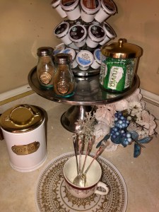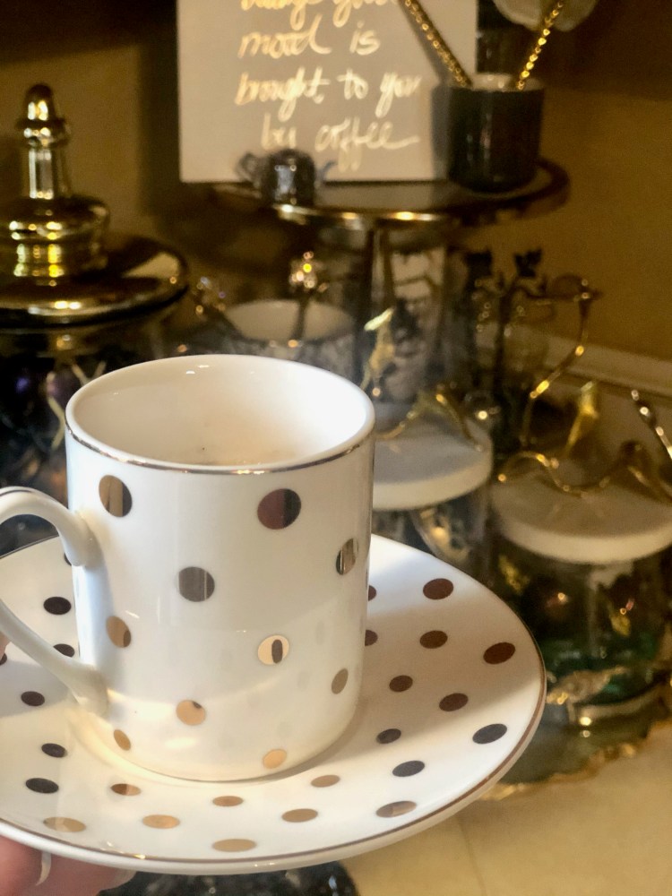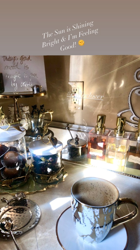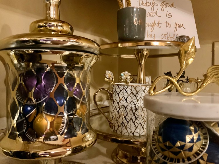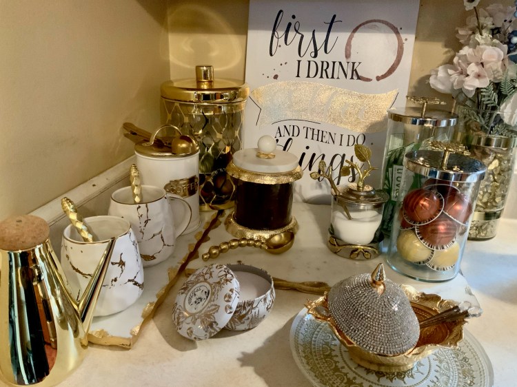 Above slideshow is my glam coffee station, as of February 12, 2021. 😊 Many products are from Inspire Me! Home Decor and Home Goods, of course.