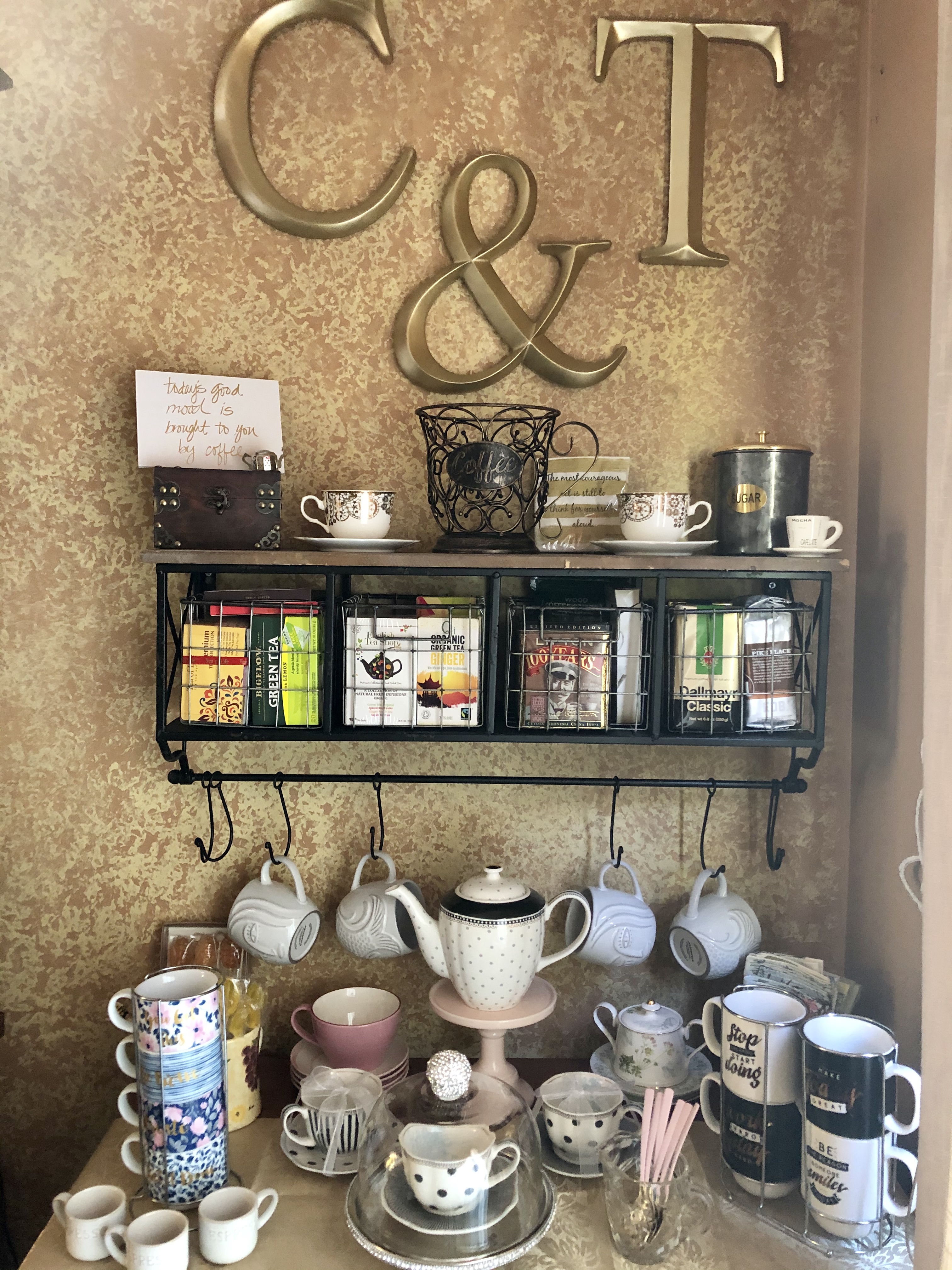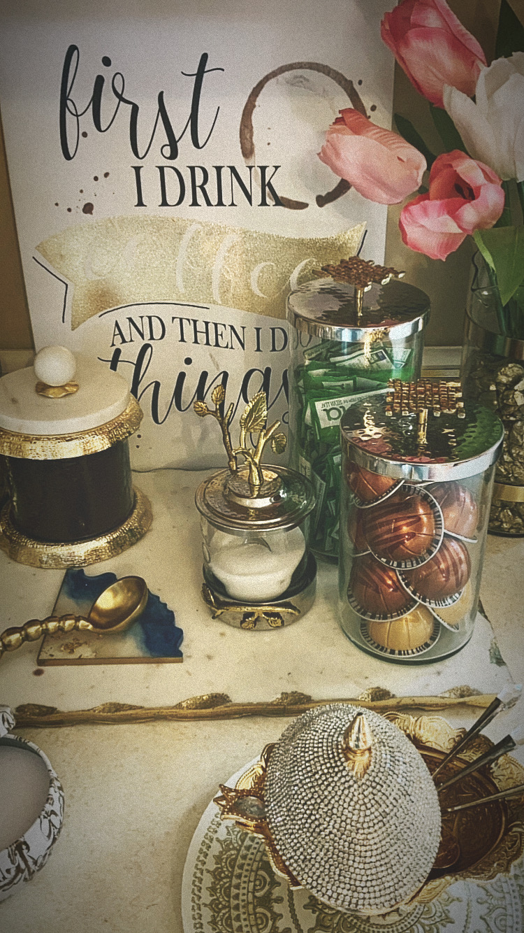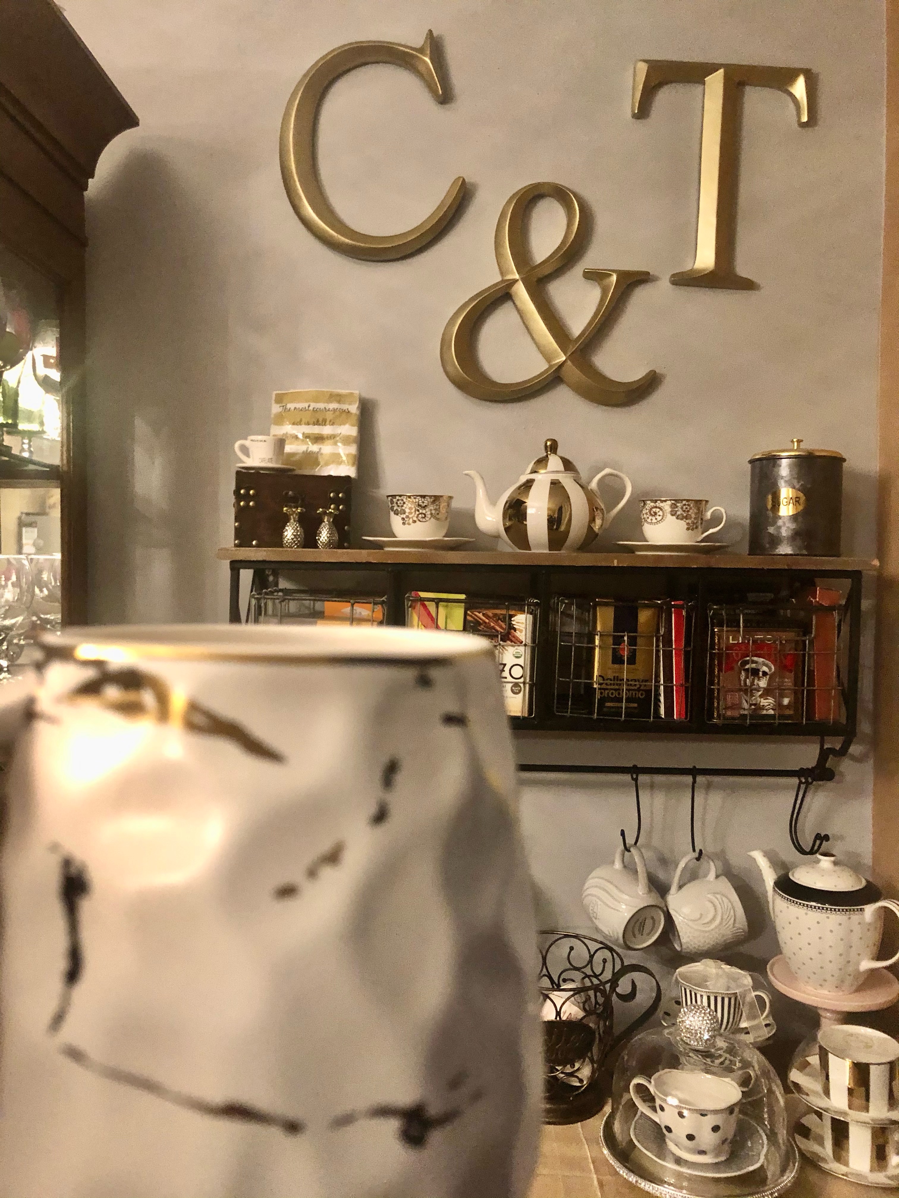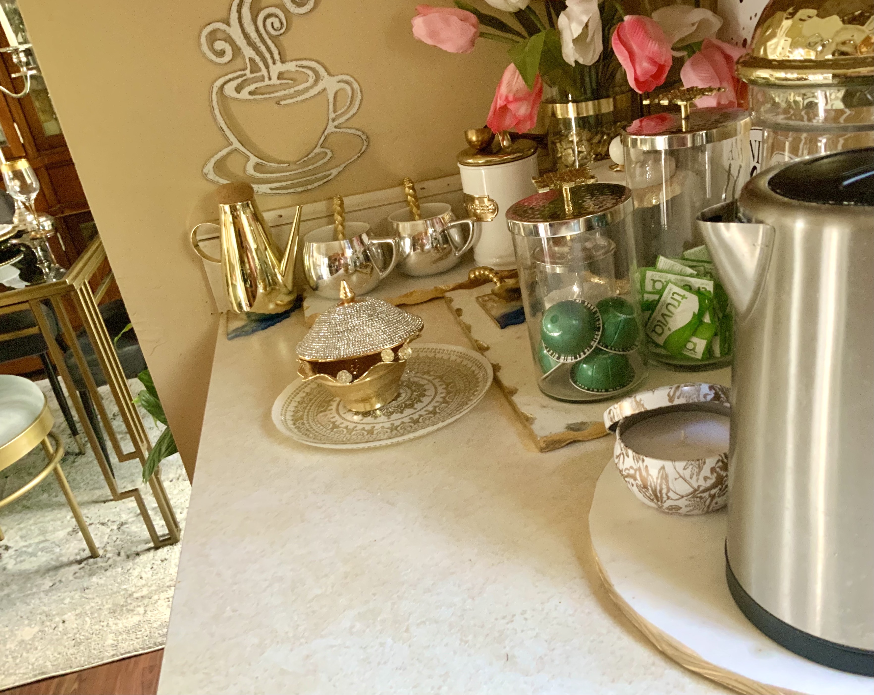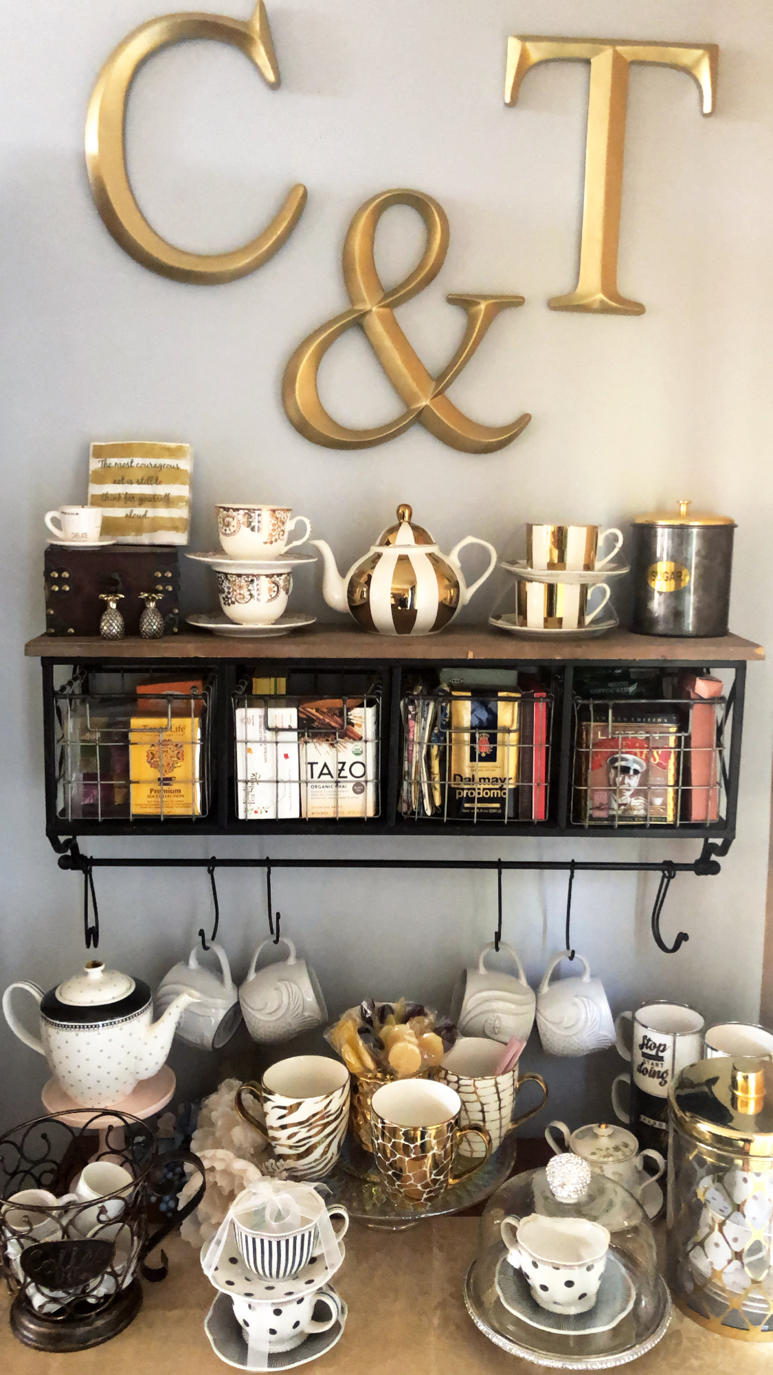 If you thought I had a coffee addiction, check out my tea station, which technically was my first coffee and tea station. What’s hilarious is my children initials are C, T and L. The gold letters “C & T” stands for “Coffee & Tea.” My youngest daughter and everyone who visited our home thought (to this day), the letters represent my kids. They think I left out my youngest daughter, who’s first name begins with the letter L. WOWZER! I guess the boxes of tea, coffee, coffee mugs, teacups and accessories did not identify the area as a coffee and tea station. π€·πΎββοΈ If you follow me on Instagram, you know I’m trying to find a solution to this confusion. π€¦πΎββοΈ