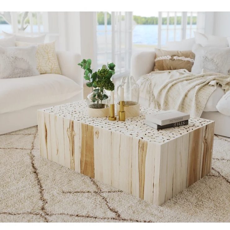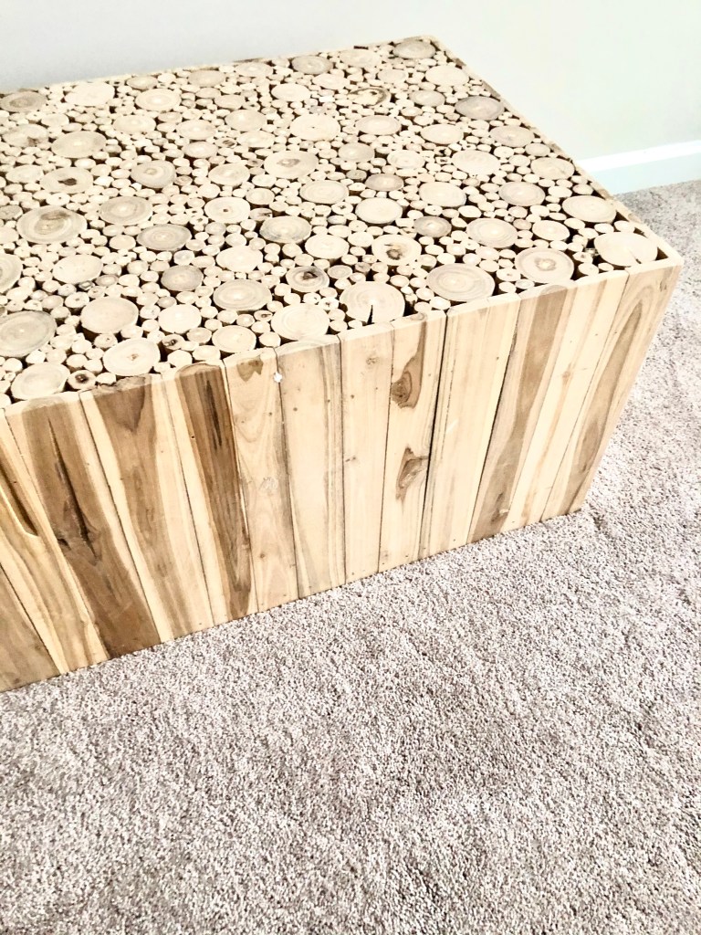 We were originally looking for a “u-shape”coffee table. But, when we laid our eyes on this unique solid wood table, we fell in love.