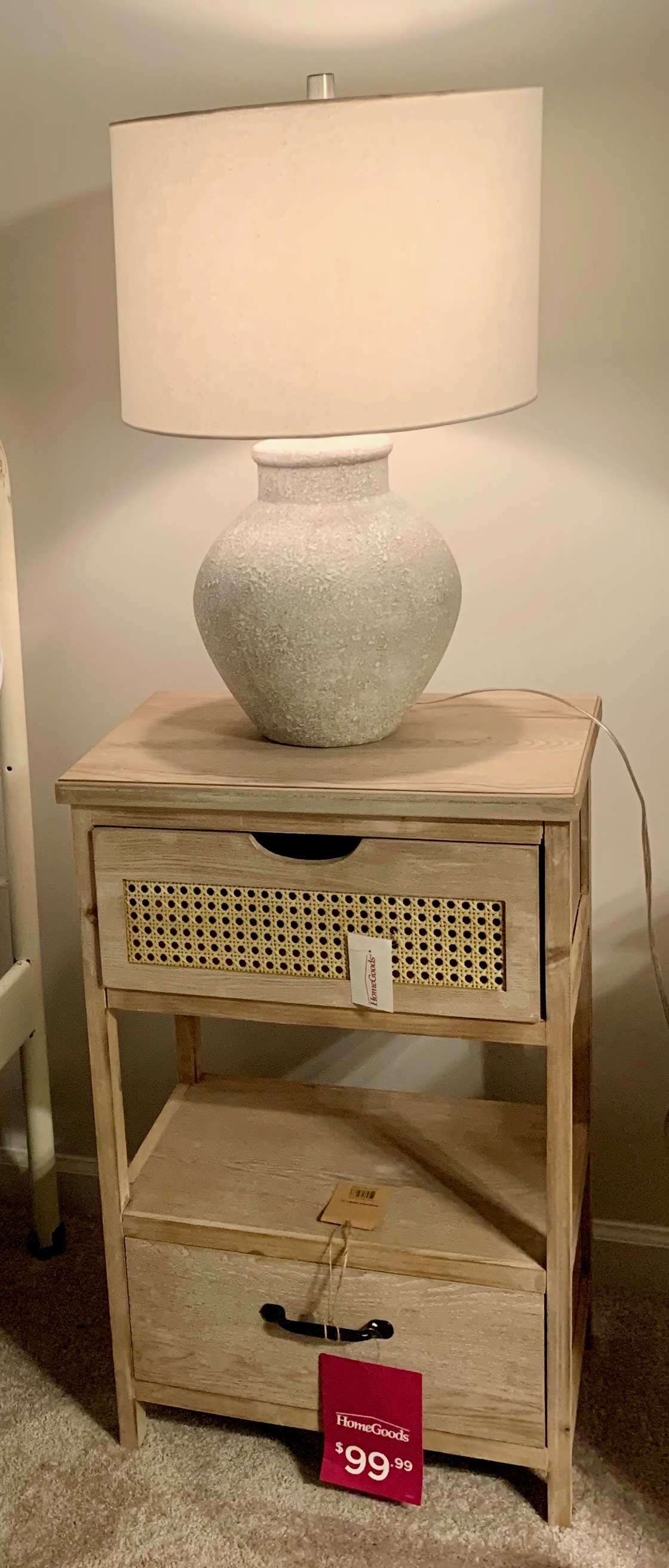 During a day of home decor shopping, my daughter was wiped out after the second store, Target and Hobby Lobby (she’s a rookie).😋 It was still daylight outside, so, I talked her into stopping at Home Goods, which was in the same shopping center. She stayed in the car while I ran into Home Goods looking for a ceramic bowl for the console or coffee tables. I circled Home Goods so fast, picking up pasta bowls, saucers and at the end, I stumbled upon two side tables. BINGO! They are exactly what I imagined for her bedroom. I called her to come inside the store and like me, she immediately loved the end tables. The height is 30 inches and they had two tables, PERFECT! Home Goods for the win!
