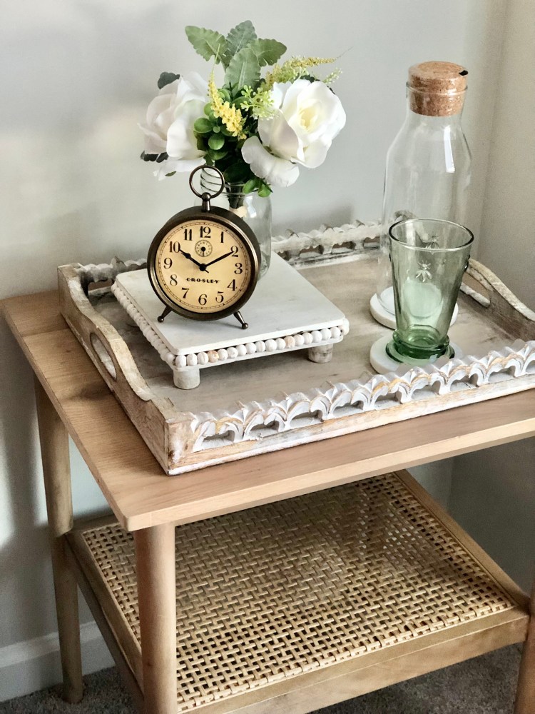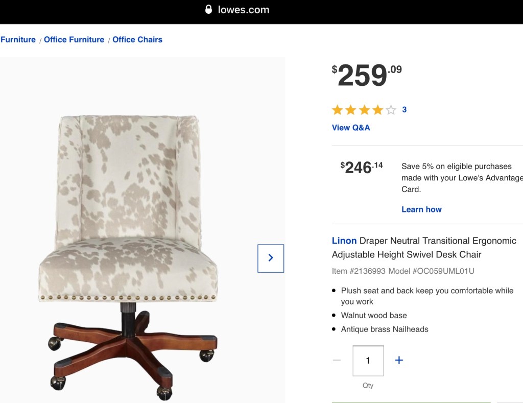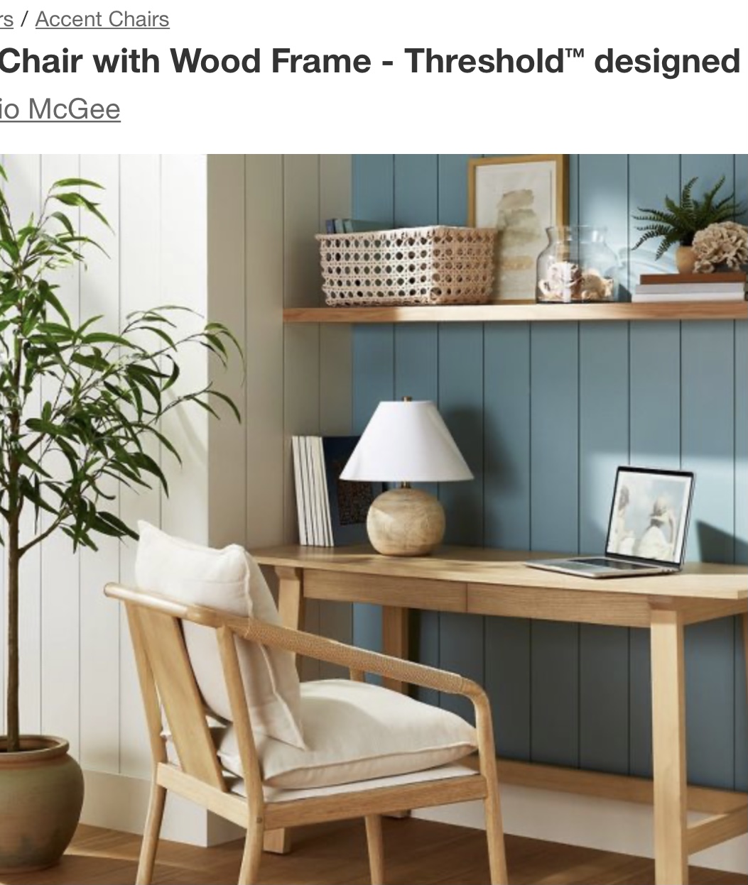 Realization hit, the alternatives I selected may also be too large for the space and the opening of the desk. In addition, the chairs on the top of my list was over the $300 budget or sold out. So, I was pleasantly surprise, when I visit At Home to see a rattan chair that matched the desk and room perfectly!