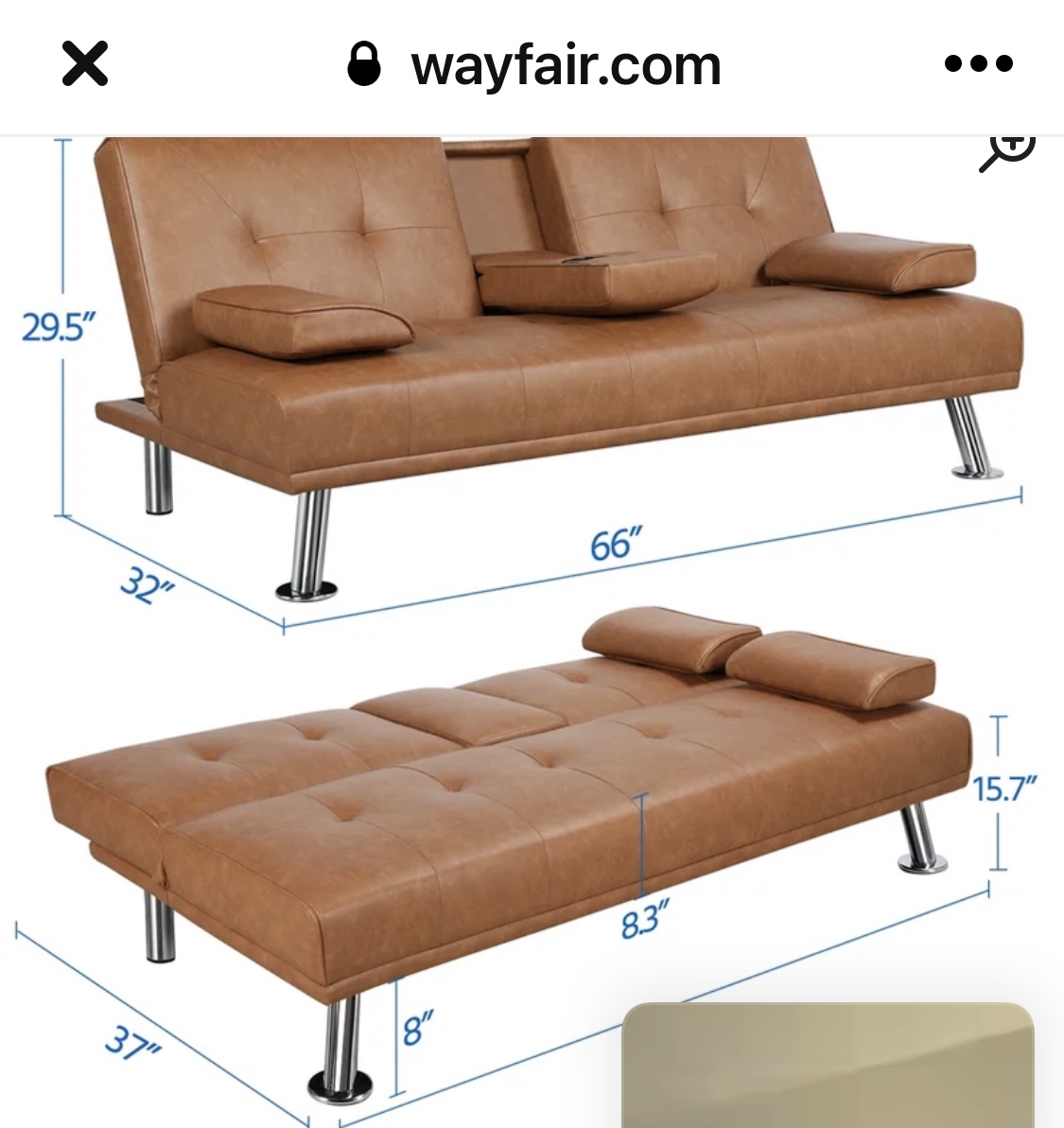 YAAAY! Two weeks from ordering, the futon arrived! Fingers crossed the futon is 100% intact and there are no defects. Now, it is time to purchase the ladder desk and chair. Beforehand, I need to measure the space again. My enthusiasm typically results in errors. I do not want to make any mistakes with purchasing furniture that may be too large for the room.