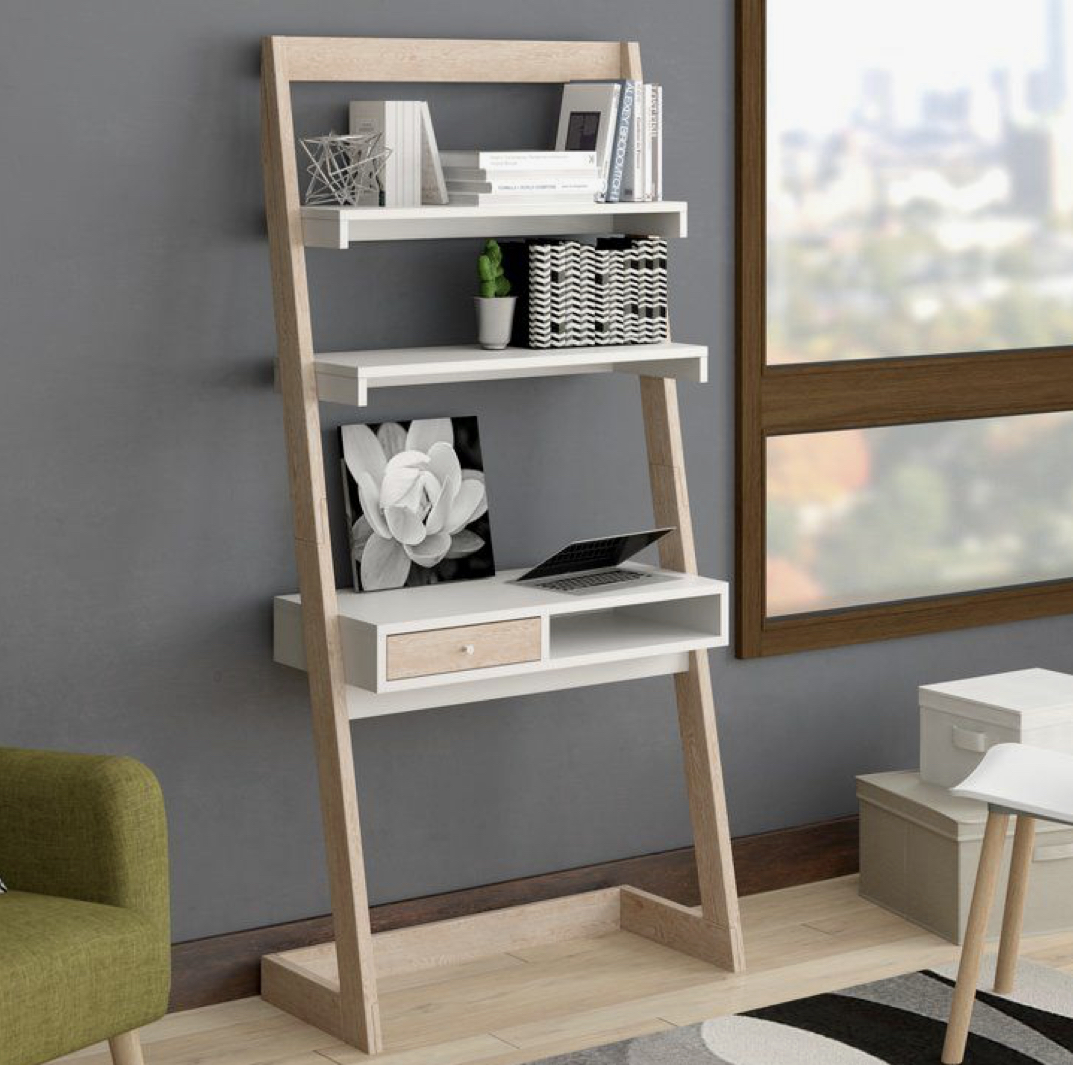 Reality – I did not purchase the ladder desk. The more I examined the desk, the writing area is too small and would not meet my daughter’s needs, since she requires space for two monitors.