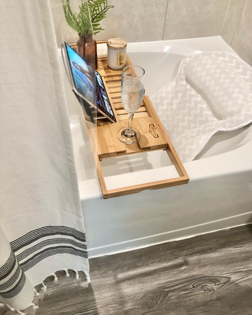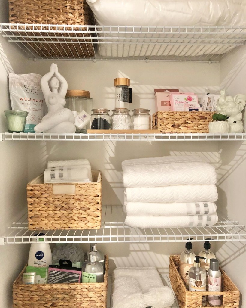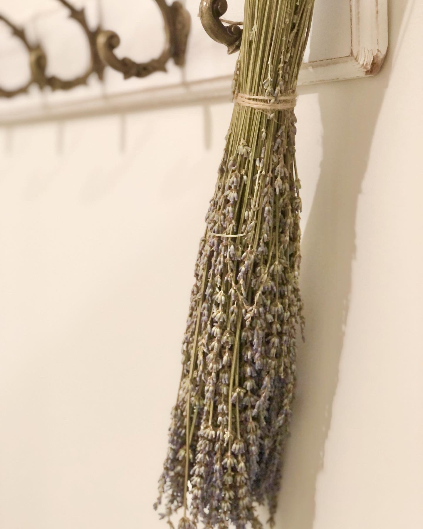 My daughter is going to have a fit when she sees how much these natural lavender stems sheds. Fingers crossed spraying the lavender with hair spray will prevent them from falling apart. If not, she’s going to have a mess on hands if someone swings the bathroom door too wide. 😬 By the way, the scent is intoxicating.