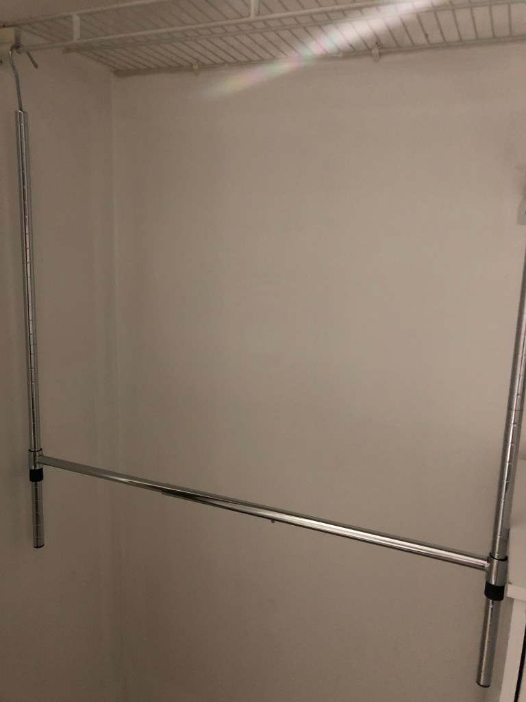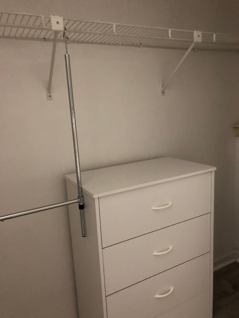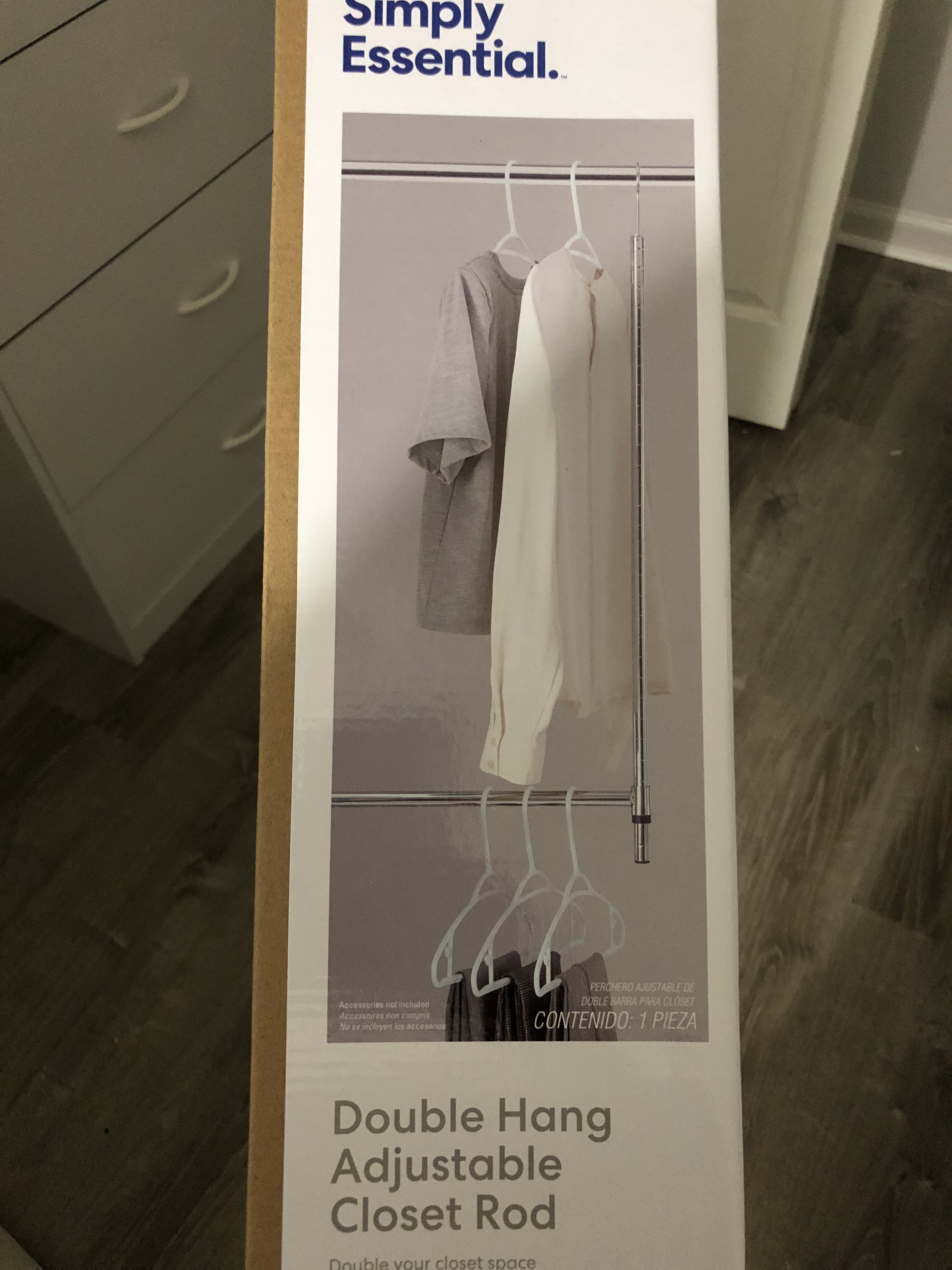 Remember when I said inexpensive. This is an inexpensive, very low budge closet organization project. You can get no cheaper than this double hang adjustable closet rod from Bed Bath and Beyond for only $15.00 and minus the 20% off with a coupon.