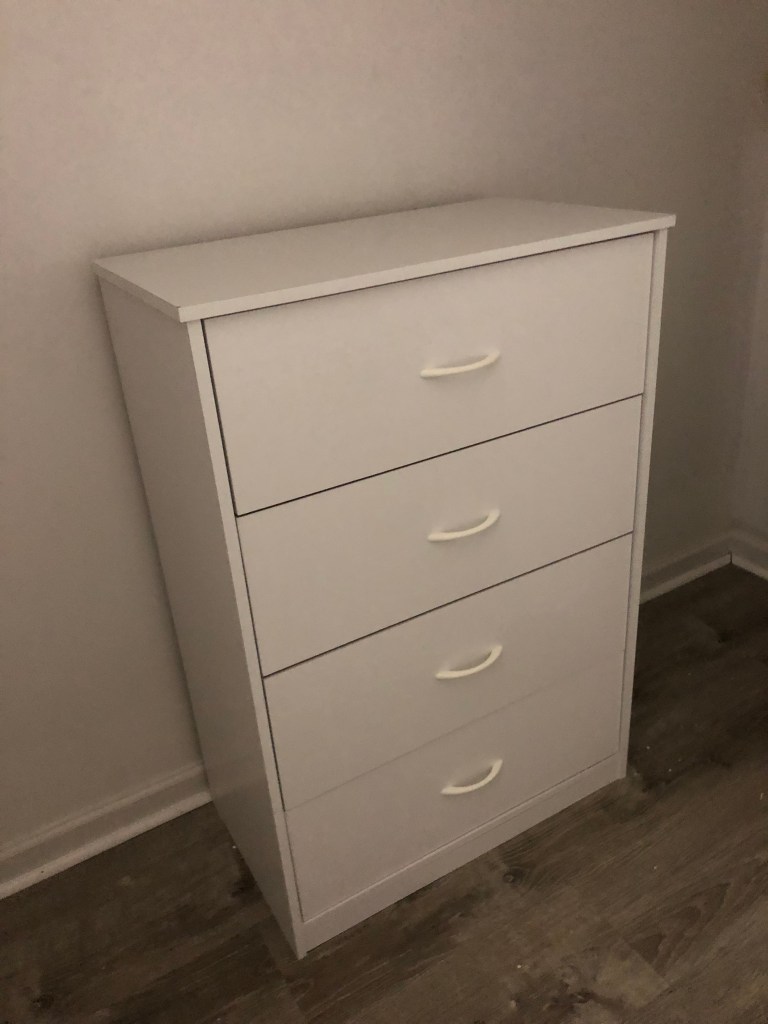 Do not ask me how long it took me to complete the dresser. I took a dinner break and washed the new comforter and sheets, purchased from Target and Home Goods. Of course, I had to put on the new mattress pad from Mattress Firm/ Sleepyโs; on a bed that I put together last night. So….. the build took a long time. ๐ฌ